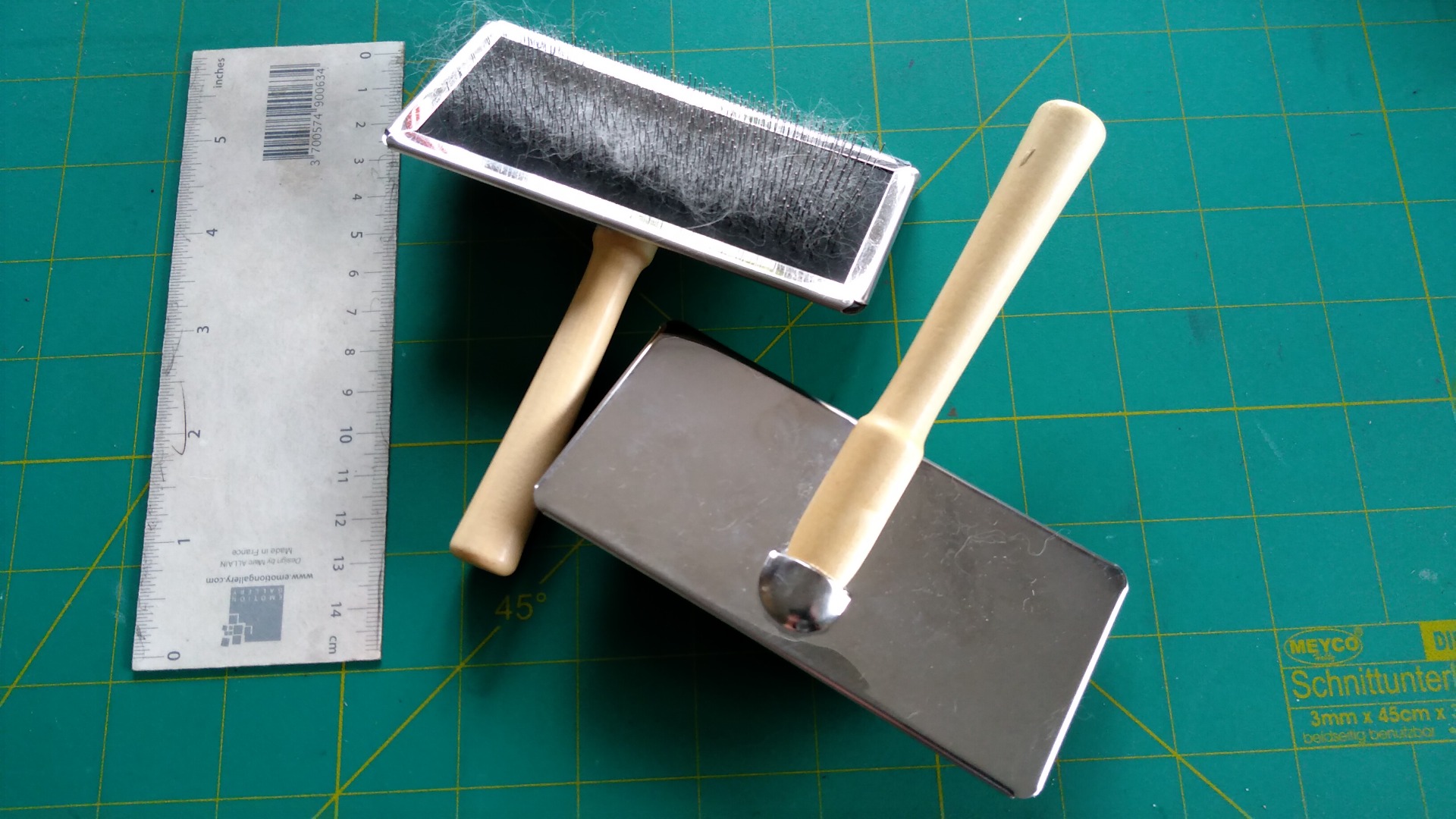 Jde o kartáče na česání psů a koček. V angličtině se jim říká slicker brush. No a pro práci s vlnou apod. potřebujete vždy dva stejné.
