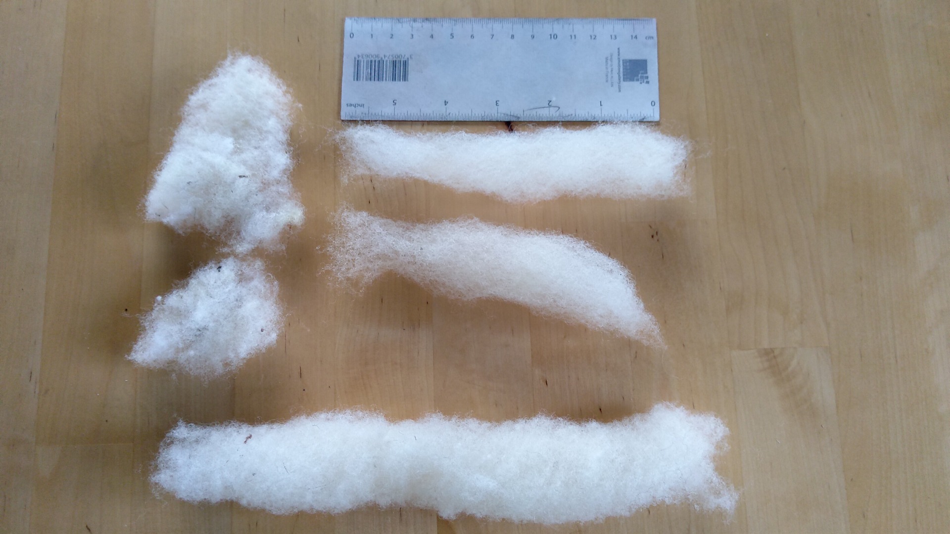 - ovčí vlna (eng. sheep wool) - jde vlastně o jemnou srst ovcí, která se zpravidla jednoročně stříhá; jemnost se liší dle plemene i tělesné části